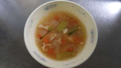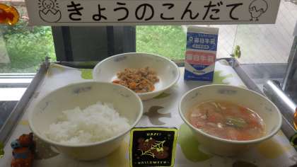 「だご汁」は,九州地方でよく食べられています。「だご」とは「だんご」のことです。給食では,だんごにトマトを入れて作りました。