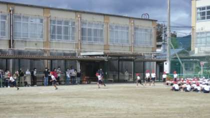 はじめに,3年生が100m走を行いました。最後まで一生懸命走っていました。