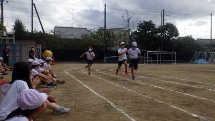 5年生の次は6年生が100m走を行いました。しっかりとスピードをつけて力強く走っていました。