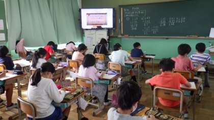 そろばんの使い方を復習した後は,そろばんを使って小数の計算をしました。