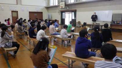 大徳寺納豆を代々つくっておられる地域の磯田さんを講師にお招きし,大徳寺納豆についての話をお聞きしました。大徳寺についてのお話や,代々伝わる方法で製造しておられること,仕事への思いなどについてのお話を聞くことができました。子どもたちは,メモをとりながら話を聞いたり,質問したりしていました。