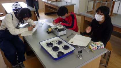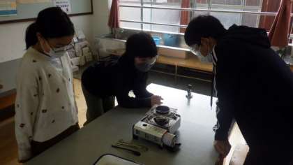 蒸発皿を加熱して,水溶液にとけているものを取り出す実験をしています。