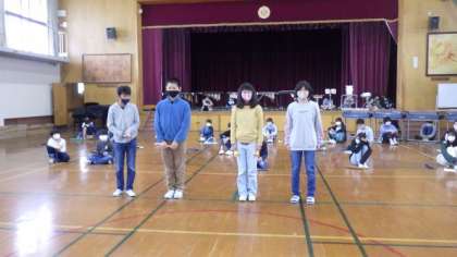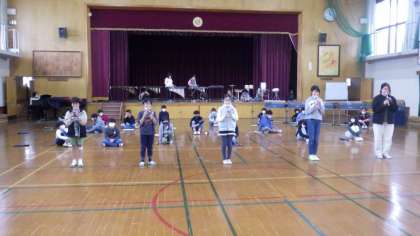 今日は体育館で学習発表会の練習をしました。曲の紹介や合奏の練習を順番に行いました。