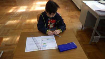 ワークシートやドリルなどを使って,算数の問題に取り組んでいます。