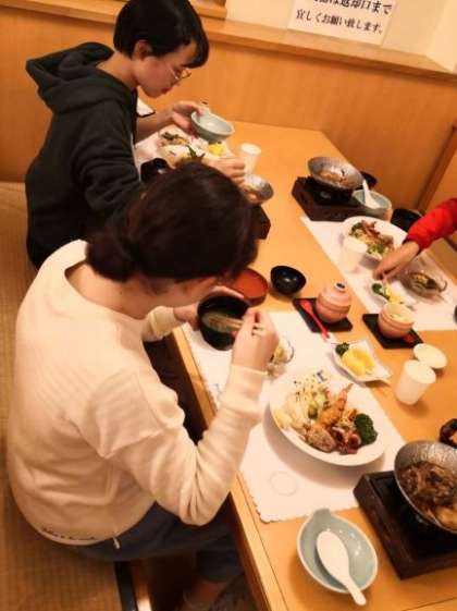 とても豪華な食事に子どもたちは,大盛り上がりでした。おいしくいただいています。