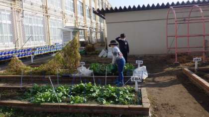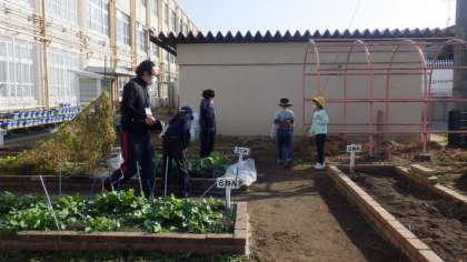 3組では朝の会の後に,学習園の水やりをしたり,学習園のいろいろな植物の観察をしたりしています。