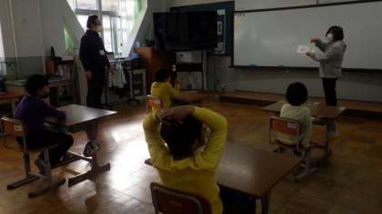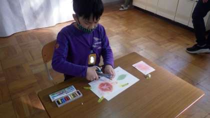 今日はステンシルの方法を使って,落ち葉を表す学習をしています。