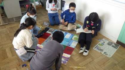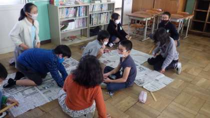 1平方メートルの新聞紙を作った後,いろいろな物を置いて比べたり,広さを調べたりしました。