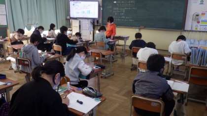 ともなって変わる2つの量をみつけて,表,式,グラフを使って変化や関係を考える学習をしています。