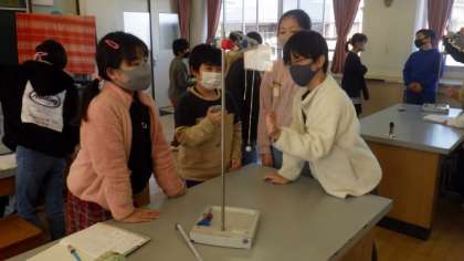 振り子の1往復する時間は,おもりの重さで変わるのか,条件を整えて調べる学習をしています。