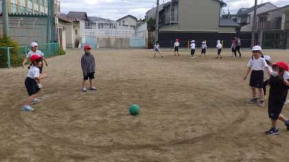 24日(水)1年体育「ころがしドッジボール」