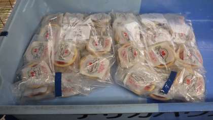 中学校給食は,お弁当箱に入った状態で配ります。おかず・ごはん・デザート・牛乳がそれぞれ箱に入って届きました。