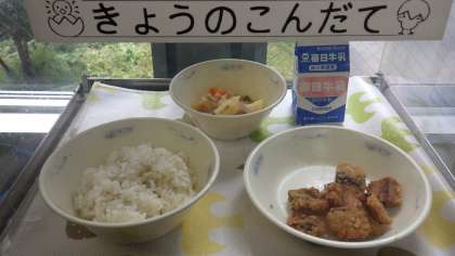 水でもどしてやわらかくしてから使います。給食では,もどし汁を「だし」として使っています。