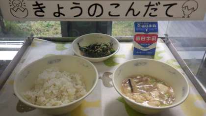 「ぶた肉ととうふのくず煮」は,だしのうま味やしょうがの香りを感じながら食べてほしいと思います。