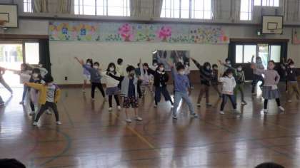 今日の5・6時間目に「6年生を送る会」を行いました。感染防止のため,全校児童では集まらず,体育館に並んでいる6年生に向けて,各学年が交代で発表する形で行いました。