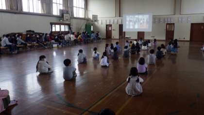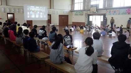 プレゼントの後は「旅立ちの日に」の合唱を発表しました。感染防止のため,事前に距離をとって合唱した様子を録画したものを観てもらう形となりましたが,6年生のきれいな歌声を1〜5年生もしっかりと観ていました。