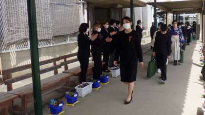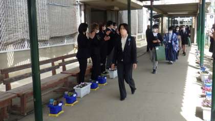 卒業式の後は,教室で話をした後,保護者の皆様と教職員で花道をつくりました。