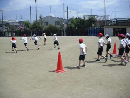2年生は,体育の学習で50メートル走の記録を取りました。力いっぱい走っていました。