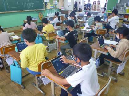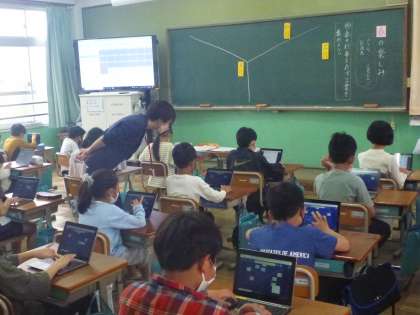 3組と4年生は,1人1台タブレットを用いて学習していました。今日はロイロノートを使ってみんなと考えを共有したり,写真を使って自分のことを発表したりしました。