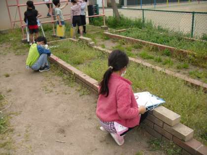 校庭の花や生き物を虫メガネを使って観察しました。