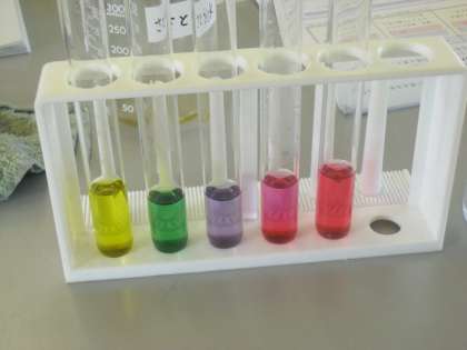 酸性は赤色、アルカリ性は黄色になりました。