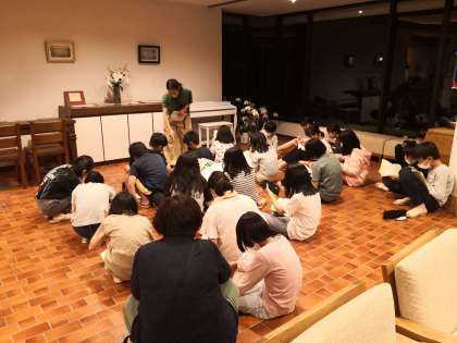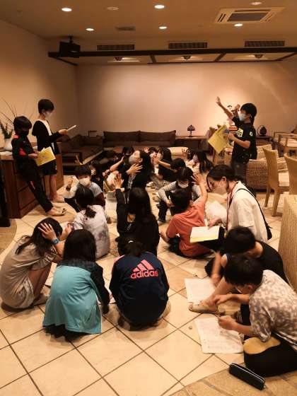 夕食後,反省会を学級ごとに行いました。一日目のよかったところや,明日直したいところを出し合いました。