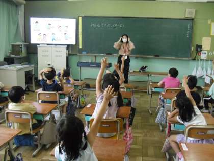 先週の1年1組に引き続き,1年2組でも藤木先生と「食の学習」を行いました。