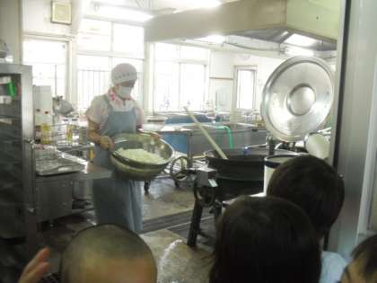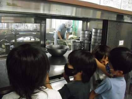 生活科の学習「なかよしだいさくせん」で,給食室の見学に行きました。