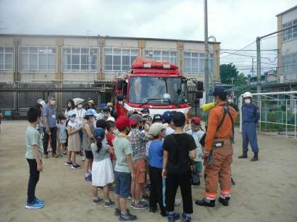 消防車に内部をていねいに見せていただいたり、起震車で震度6や7の地震を体験したりしました。
