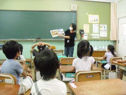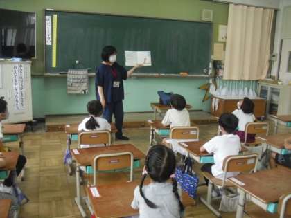 朝のさわやかタイムをつかって,地域の図書ボランティアの方に絵本の読み聞かせをしていただきました。