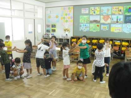 それぞれのクラスで「1がっき、がんばったねかい」を行いました。内容を何にするのかも学級会で話し合い、みんなで決めました。グループで協力したり、みんなで楽しんだりするゲームを楽しみました。