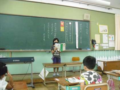 国語科「やくそく」の学習で,最後に音読会をしました。