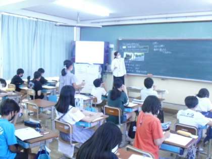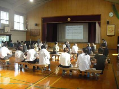 参観の後は、体育館で「情報モラル講座」を実施しました。インストラクターの方をお招きし、保護者の皆様と共に教職員もお話を聞いて一緒に考えました。「親子の話し合いが必要だと思いました。」「子どもの声を聞く大切さを思い出しました。」などのご意見をいただきました。大変暑い中でしたが、ご参加いただきありがとうございました。