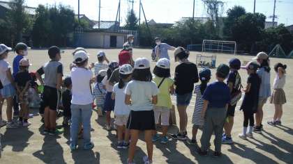 今日は、PTA本部・厚生委員の皆様にお世話になり、ボールを使ったゲームを楽しむ大会を行いました。始めに、みんなで体育参観の準備体操をして、ルールの説明を聞きました。3・4人のチームに分かれて、点数を競います。