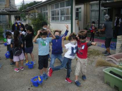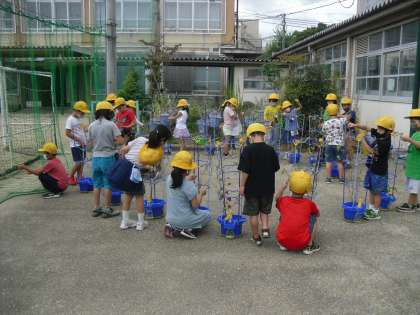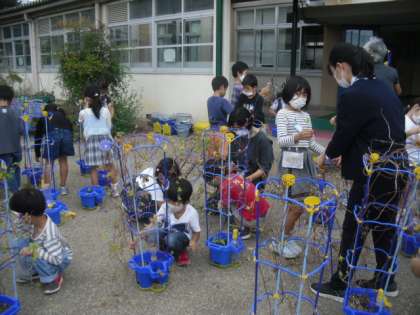 生活科の学習で,今まで大切に育ててきたあさがおのツルをまとめてリースを作りました。