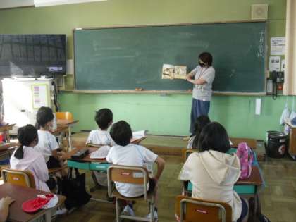 今朝は,2年生の教室で読み聞かせをしていただきました。図書ボランティアの皆様が,いつも,子どもたちの学年にあった本を選んで,読んでくださいます。読み聞かせをしてもらっている子どもたちは,本の世界を楽しんでいる様子で,楽しい場面では声を出して笑い,悲しい場面や自分の考えを探す場面では,静かに聞き入っています。