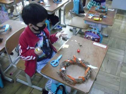 1年生 リースの飾りつけ