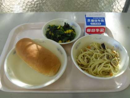今日の『きのこスパゲティ』には、旬のきのこである、まいたけ・しいたけ・エリンギが使われていました。きのこの香りと食感を味わいました。