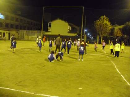 子どもたちは、保護者の方々と夕方に学校に集まり、あらかじめ決めていただいていたチームに分かれ、ドッジビーを楽しみました。暗くなった学校は、普段子どもたちが学習している様子とは異なるので、いつもと違う雰囲気に興奮しているようでした。