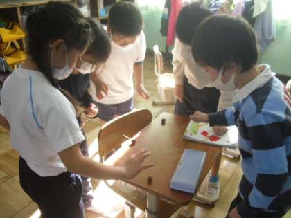 生活科「あきといっしょに」の学習で,どんぐりゴマを作りました。