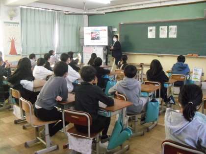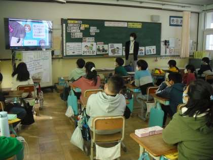 今日は、北警察からお二人にお越しいただき、クラスごとにお話をしていただきました。子どもたちがSNSを通じて犯罪に巻き込まれることも増えているので、様々なケースについて具体的にお話していただきました。知識だけでなく、危険を察知したり回避したりすることもできればと思います。