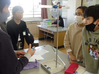 結果は,どちらも1往復する時間に変わりはないことに気づきました。子どもたちは予想の段階で「重さが軽いと速く動き,重たいとゆっくり動くイメージ」があったようで,結果に驚いていました。