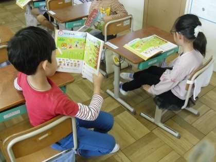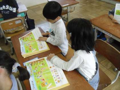 算数科「なんばんめ」の学習で、教科書の絵から自分たちで問題をつくり、隣のお友だち と出し合いました。