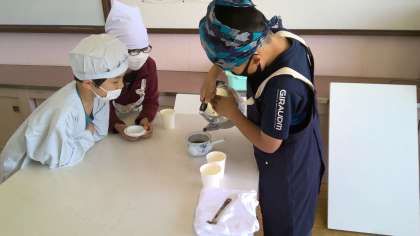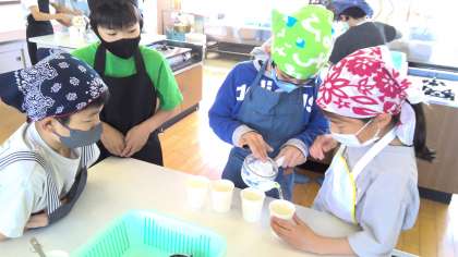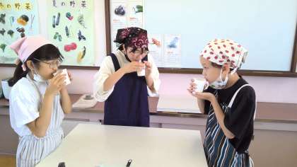 家庭科の学習でお茶をいれる実習を行いました。