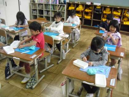 図画工作科「ひもひもねんど」の学習をしました。