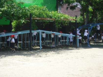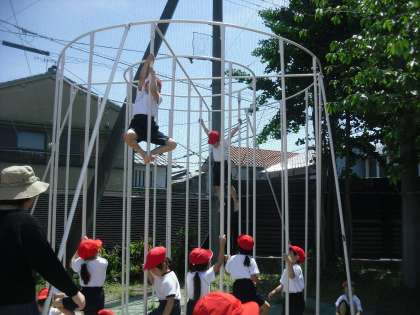 今日は、ジャングルジム、のぼりぼう、ぐらぐらばし、うんていに挑戦しました。