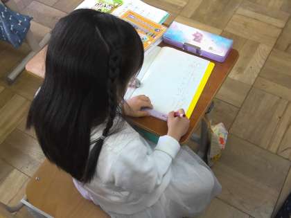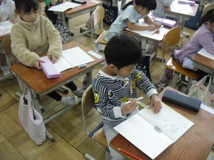 ノートに向かって正しい姿勢で、一生懸命字を書く姿が素晴らしかったです。