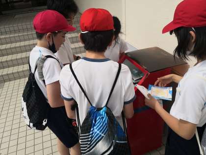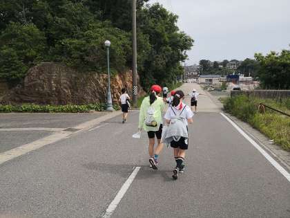 日間賀島に着き、島を一周するウォークラリーに出発しました。グループごとに協力しながら、地図をたよりに島内をめぐっています。それぞれのポイントにあるスタンプを押していくと、素敵な絵ができあがるようです。