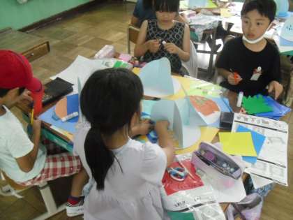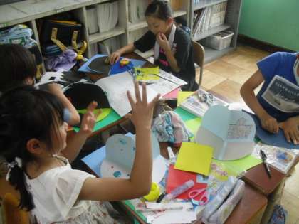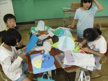 図画工作「くるくるランド」の学習で、くるくる回る仕組みを生かした作品をつくり始めました。子どもたちは、場面が移り変わる面白さに気付いて、時間や場所、天気などが変わるように工夫していました。6/4(日)日曜参観に完成した作品をご覧いただけたらと思います。