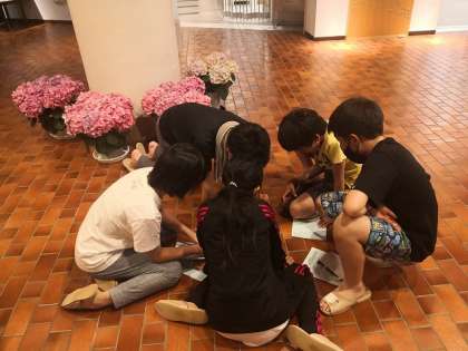 夕食後、反省会を行いました。一日目のグループでの活動の振り返りをしました。